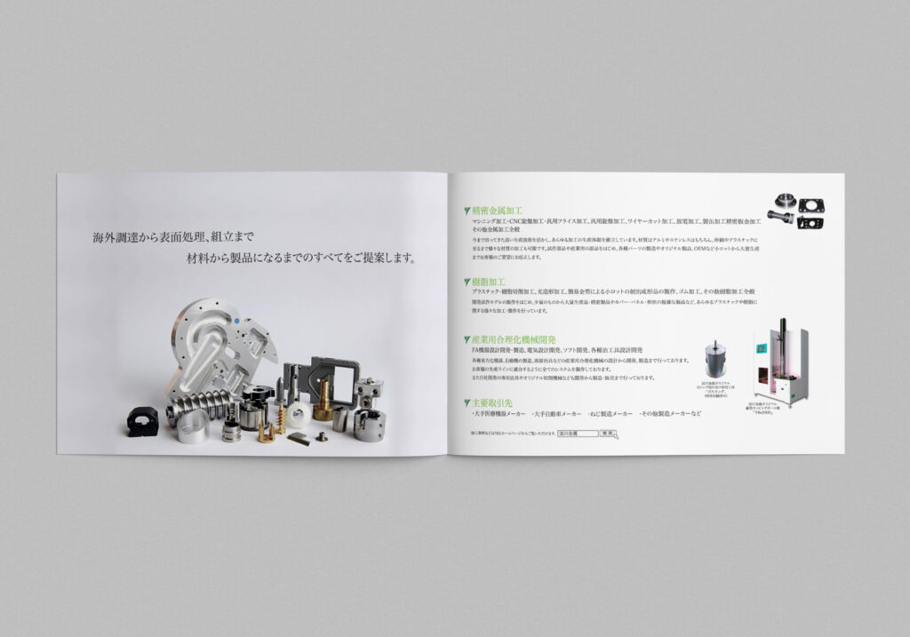 •                    【制作内容】 金属加工会社のA4ヨコ開きの会社案内パンフレットをデザイン・印刷しました。
